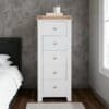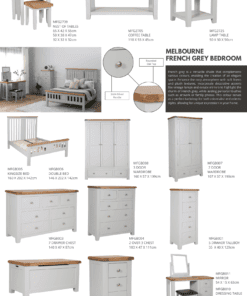 Made from a combination of solid oak, solid pine and oak veneered panels this range is beautifully finished in painted French grey with silver knob handles.