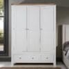 Made from a combination of solid oak, solid pine and oak veneered panels this range is beautifully finished in painted French grey with silver knob handles.