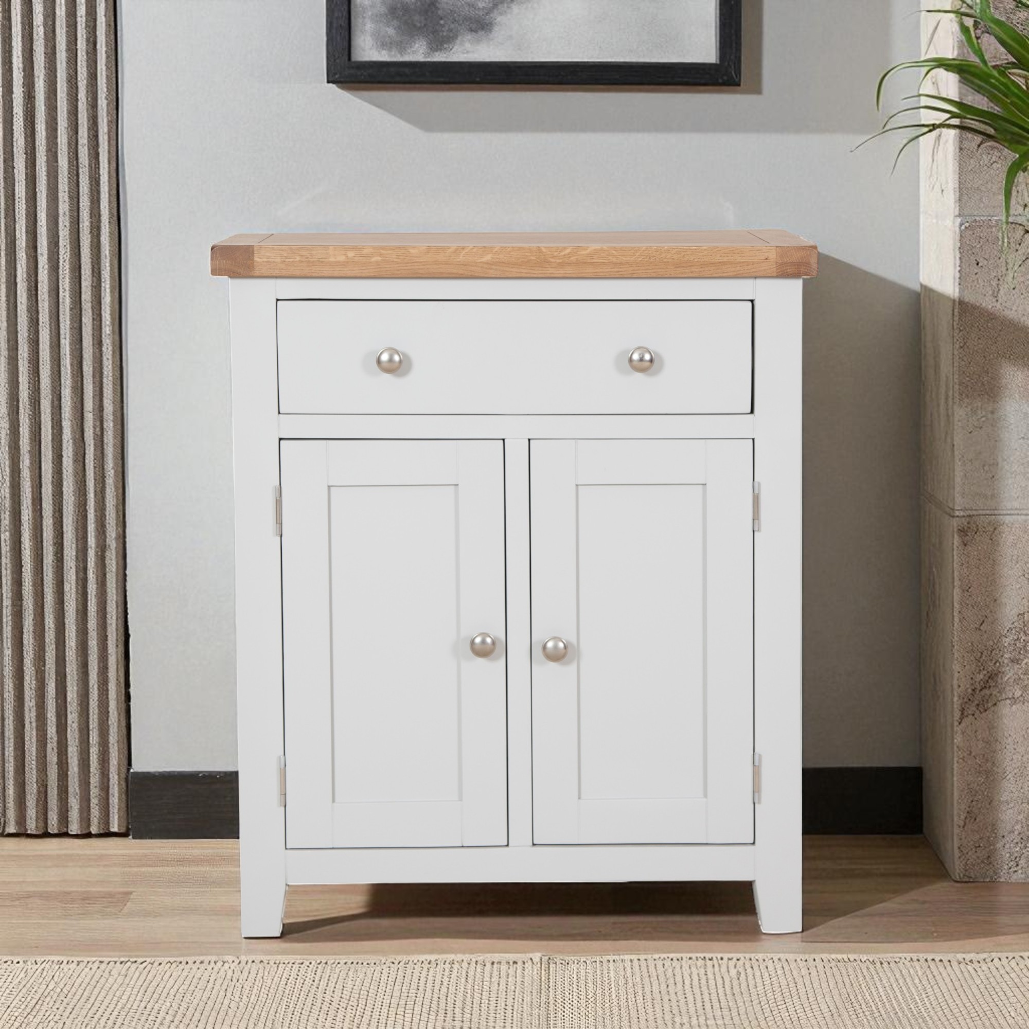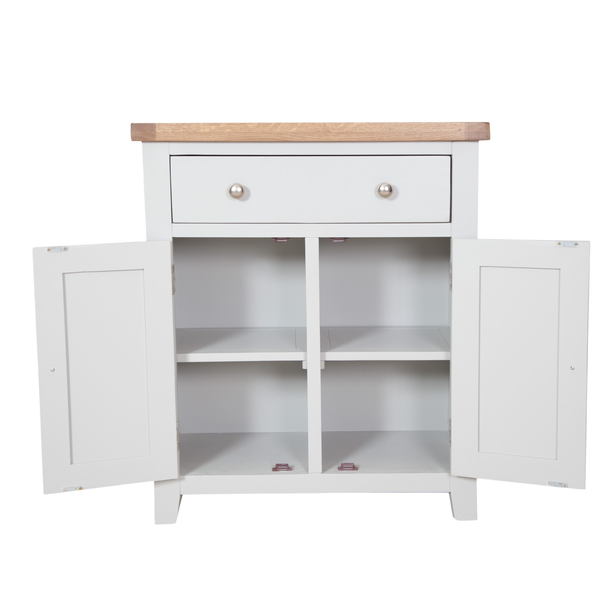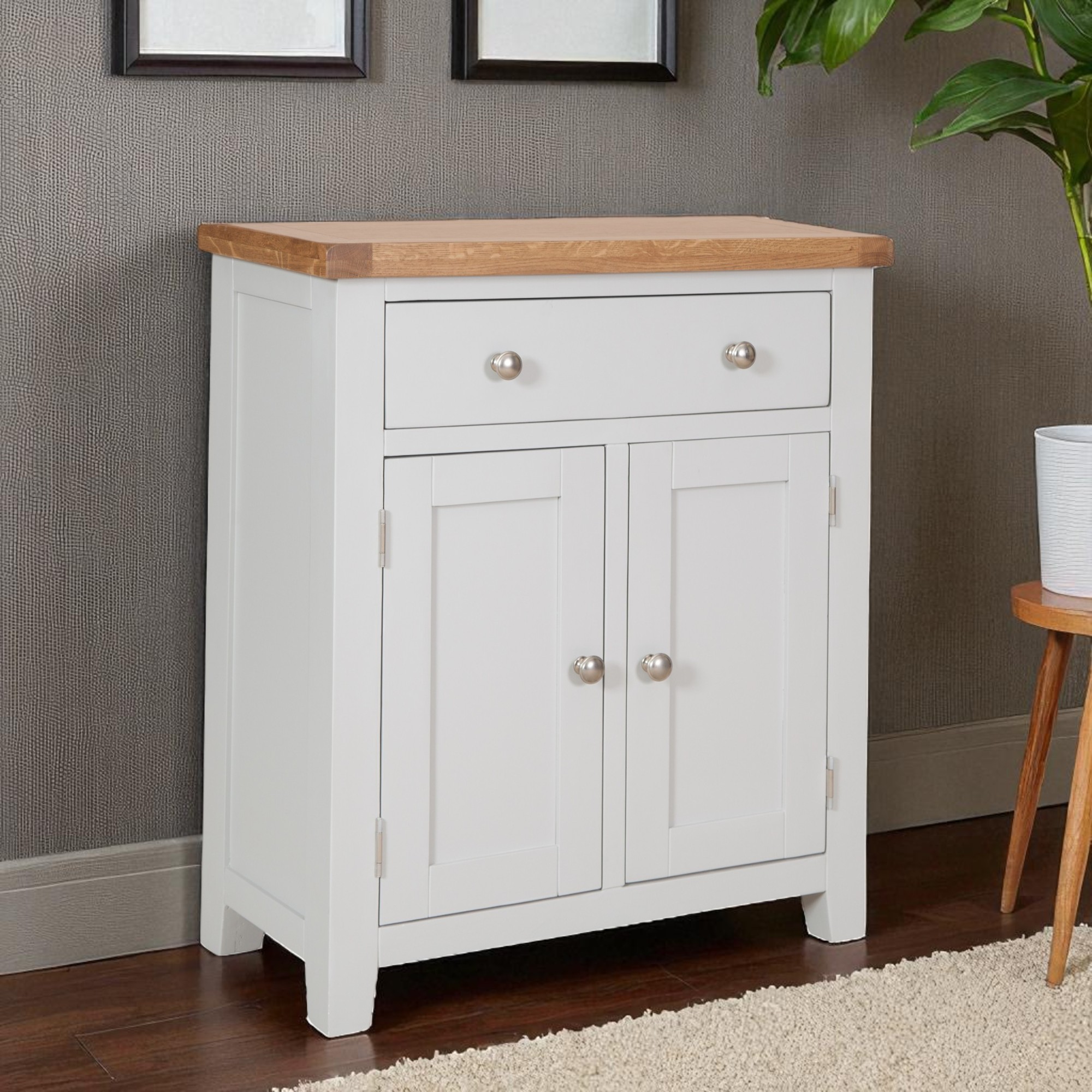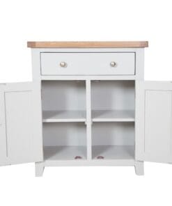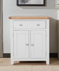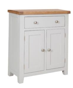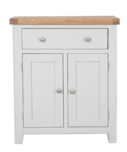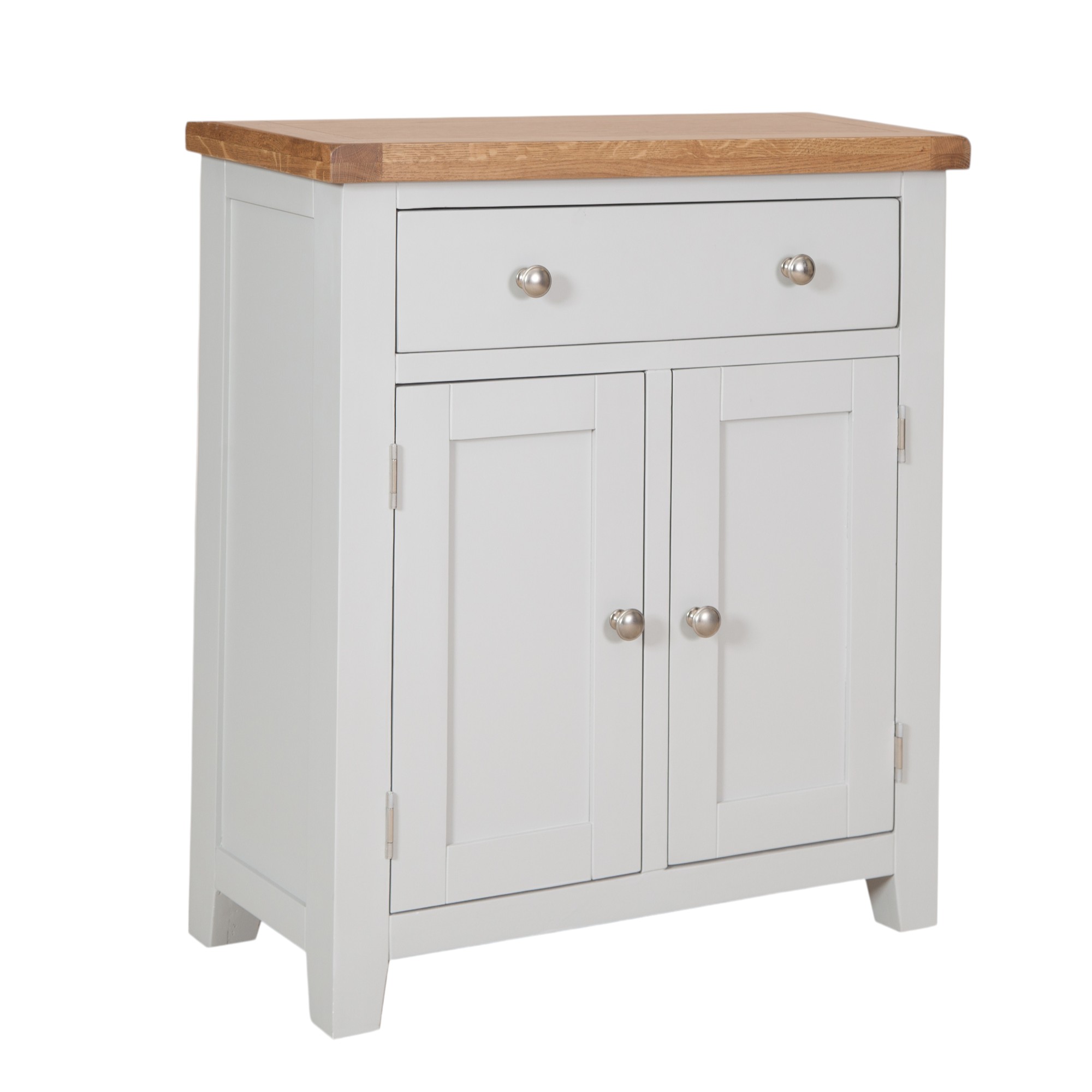 Made from a combination of solid oak, solid pine and oak veneered panels this range is beautifully finished in painted French grey with silver knob handles.