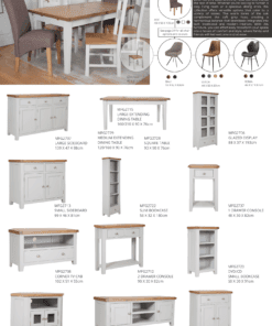 Made from a combination of solid oak, solid pine and oak veneered panels this range is beautifully finished in painted French grey with silver knob handles.