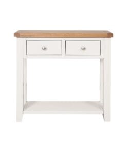 Made from a combination of solid oak, solid pine and oak veneered panels. This range is beautifully finished in a clean white painted finish with a 40mm edged solid oak top and pewter knob handles.
