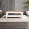 Made from a combination of solid oak, solid pine and oak veneered panels. This range is beautifully finished in a clean white painted finish with a 40mm edged solid oak top and pewter knob handles.