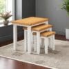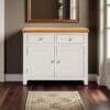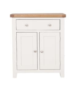 Made from a combination of solid oak, solid pine and oak veneered panels. This range is beautifully finished in a clean white painted finish with a 40mm edged solid oak top and pewter knob handles.