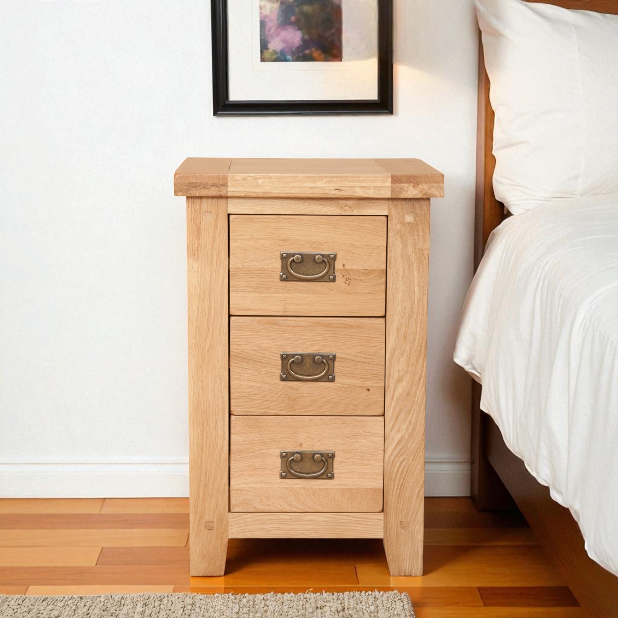 Constructed from the highest quality solid Oak in a chunky farmhouse style, our stunning Harrogate Natural is our premier range of solid oak furniture. All pieces within the Harrogate Natural range are smoothed at the edges and lacquered by hand. While all drawers have an exquisite rounding off on the corners. This collection is constructed using traditional but subtle peg jointing on the corners and dovetail joints on all drawers. The Harrogate Natural range from Classically Modern is finished with pewter knob handles. The range benefits from a 40mm edged thick top whilst the sides and back panel are constructed from veneered oak.