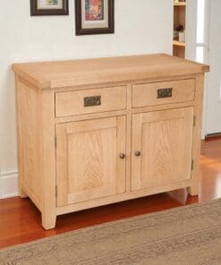 Constructed from the highest quality solid Oak in a chunky farmhouse style, our stunning Harrogate Natural is our premier range of solid oak furniture. All pieces within the Harrogate Natural range are smoothed at the edges and lacquered by hand. While all drawers have an exquisite rounding off on the corners. This collection is constructed using traditional but subtle peg jointing on the corners and dovetail joints on all drawers. The Harrogate Natural range from Classically Modern is finished with pewter knob handles. The range benefits from a 40mm edged thick top whilst the sides and back panel are constructed from veneered oak.