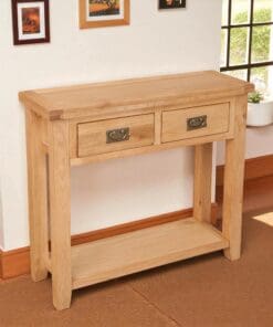 Constructed from the highest quality solid Oak in a chunky farmhouse style, our stunning Harrogate Natural is our premier range of solid oak furniture. All pieces within the Harrogate Natural range are smoothed at the edges and lacquered by hand. While all drawers have an exquisite rounding off on the corners. This collection is constructed using traditional but subtle peg jointing on the corners and dovetail joints on all drawers. The Harrogate Natural range from Classically Modern is finished with pewter knob handles. The range benefits from a 40mm edged thick top whilst the sides and back panel are constructed from veneered oak.