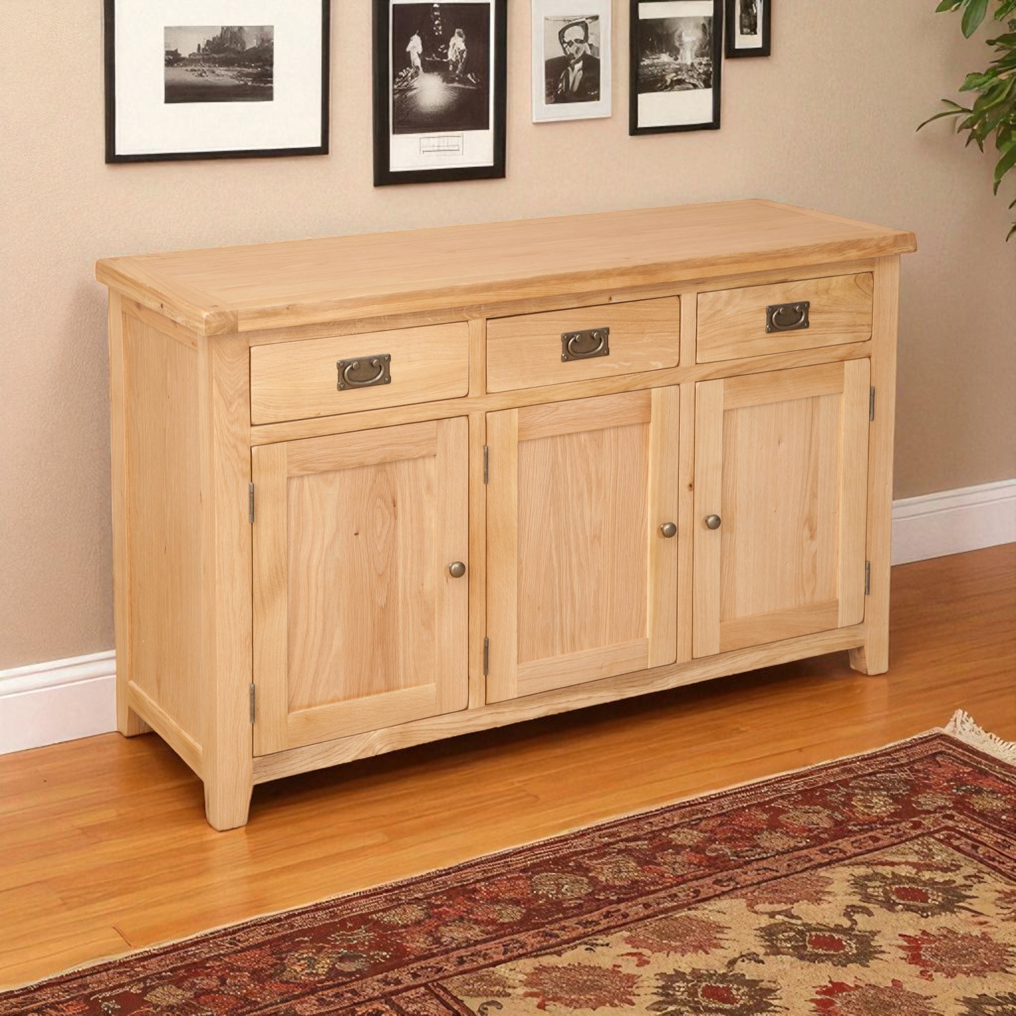 Solid Oak 3 Door 3 Drawer Sideboard Cabinet Cupboard in Chunky Harrogate Natural